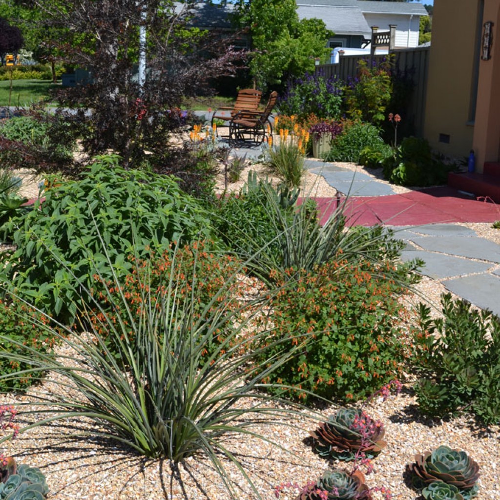 - Shrubs, flowers and succulents give a variety of textures and forms