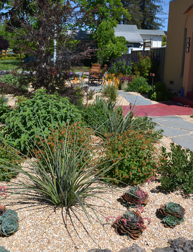 - Shrubs, flowers and succulents give a variety of textures and forms